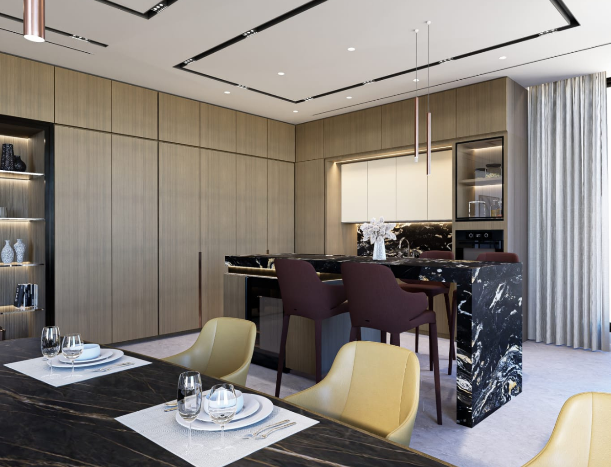 This private villa interior design project in Jumeirah Islands, Dubai focused on grand space planning for a multi-function room, bespoke furniture selection, opulent materials, layered architectural lighting, and refined detailing to create a luxurious, versatile, and timeless environment that reflects elegance, comfort, and contemporary villa living.